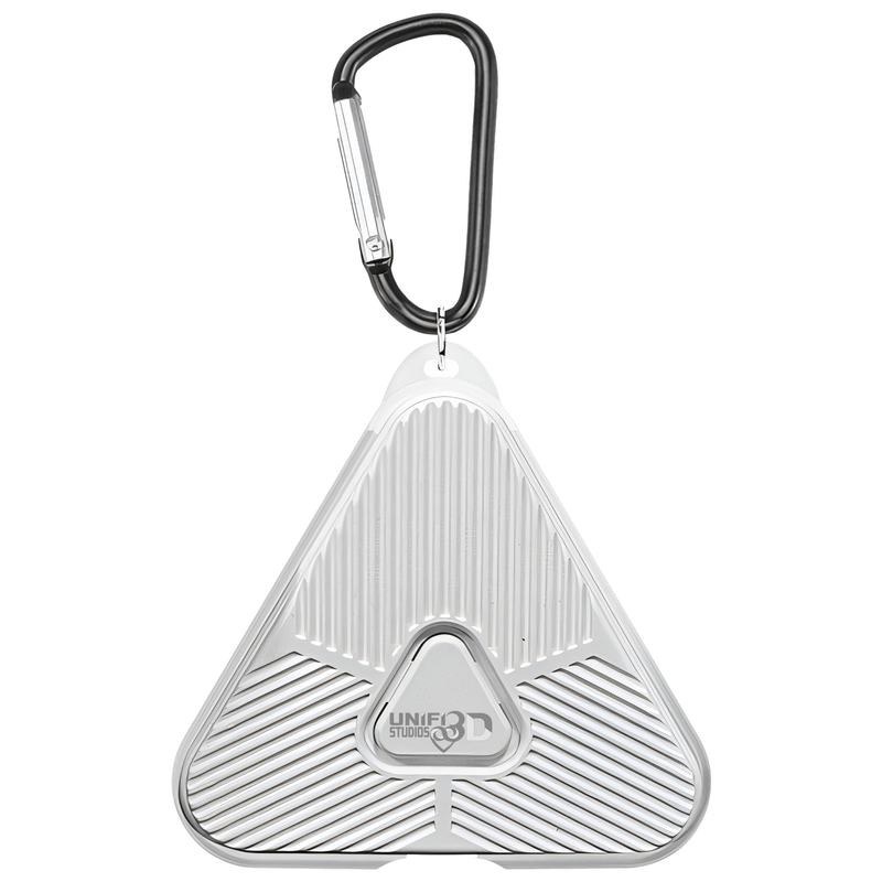 Elegant si minimalist, in forma de triunghi (inspirat de piramide), cu carabiniera inclusa pentru prindere usoara pe rucsac, curea sau haine.