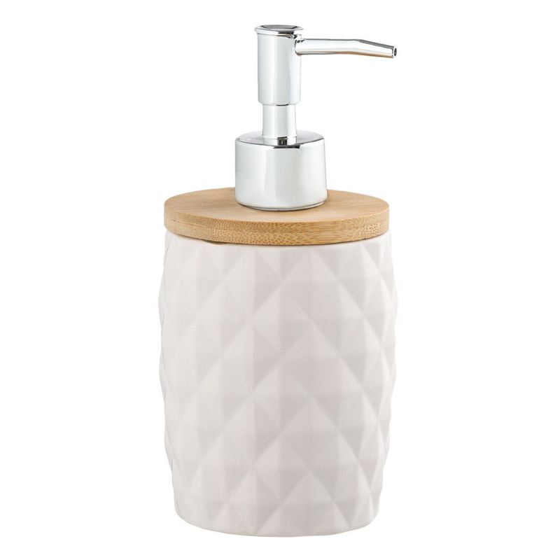 Dozator sapun lichid, alb, ceramic, capac bambus, model diamond, capacitate 340ml Dozator sapun lichid, alb, ceramic, capac bambus, model diamond, capacitate 340ml