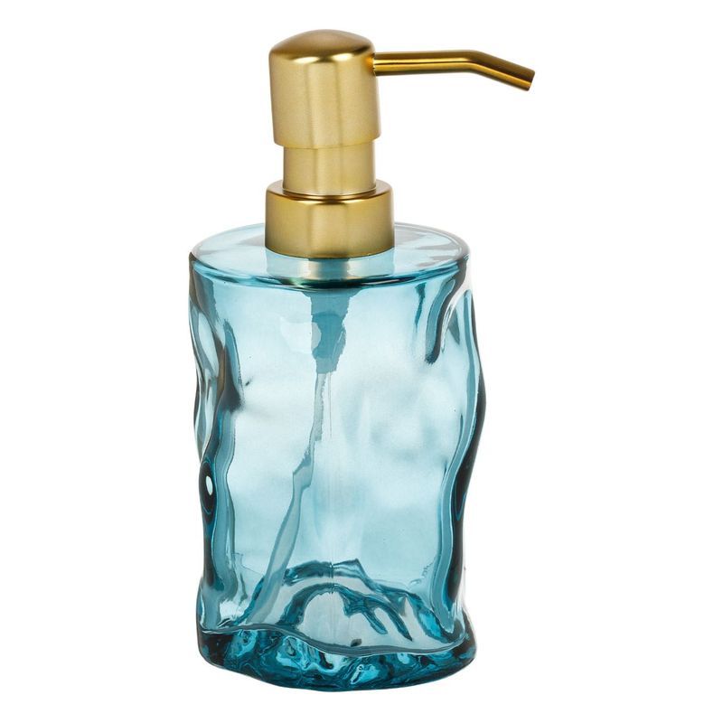 Dozator sticla, model ondulat, culoare bleu, pompa aurie, capacitate 280ml Dozator sticla, model ondulat, culoare bleu, pompa aurie, capacitate 280ml
