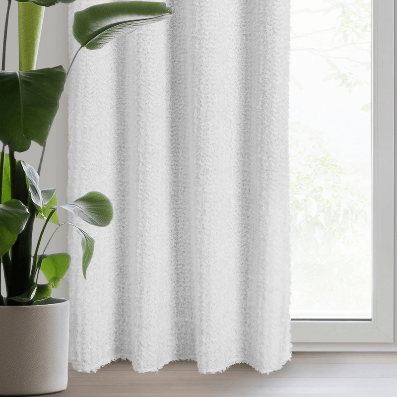 Draperie EVA MINGE TIFFANY confectionata din tesatura de sifon, din fir de mohair si volane subtile, 135 x 250 cm, Draperie EVA MINGE TIFFANY confectionata din tesatura de sifon,din fir de mohair si volane subtile, 135 x 250 cm, alb