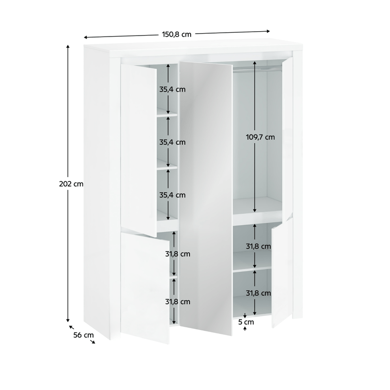 Dulap 5D cu oglinda, alb lucios, LINDY Dulap 5D cu oglinda, alb lucios, LINDY