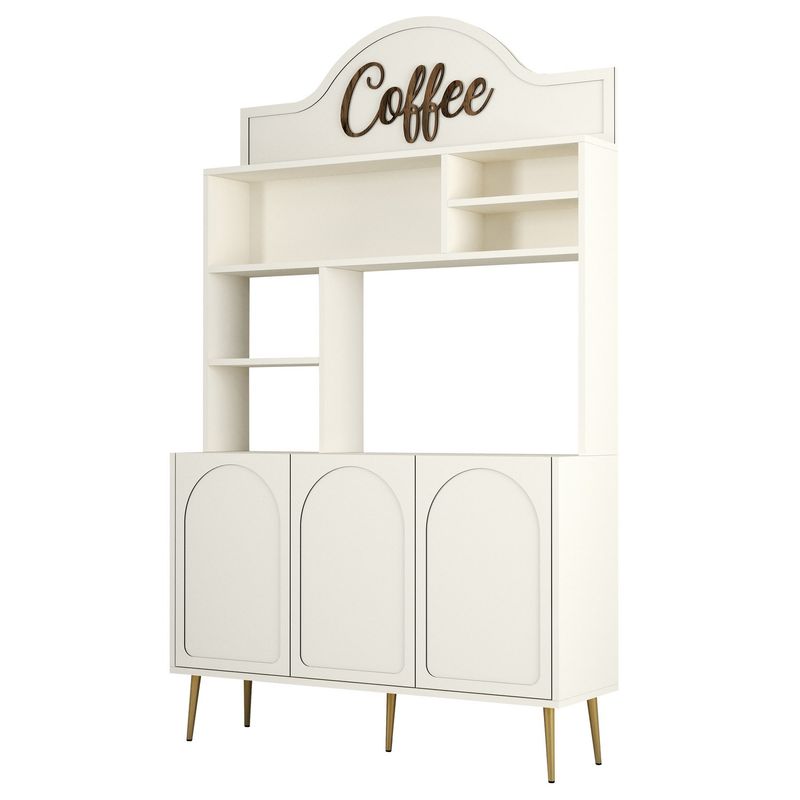 Dulap bar cafea, Hanah Home, panou de particule melaminat, crem auriu, 120x35x202 cm Dulap bar cafea, Hanah Home, panou de particule melaminat, crem auriu, 120x35x202 cm