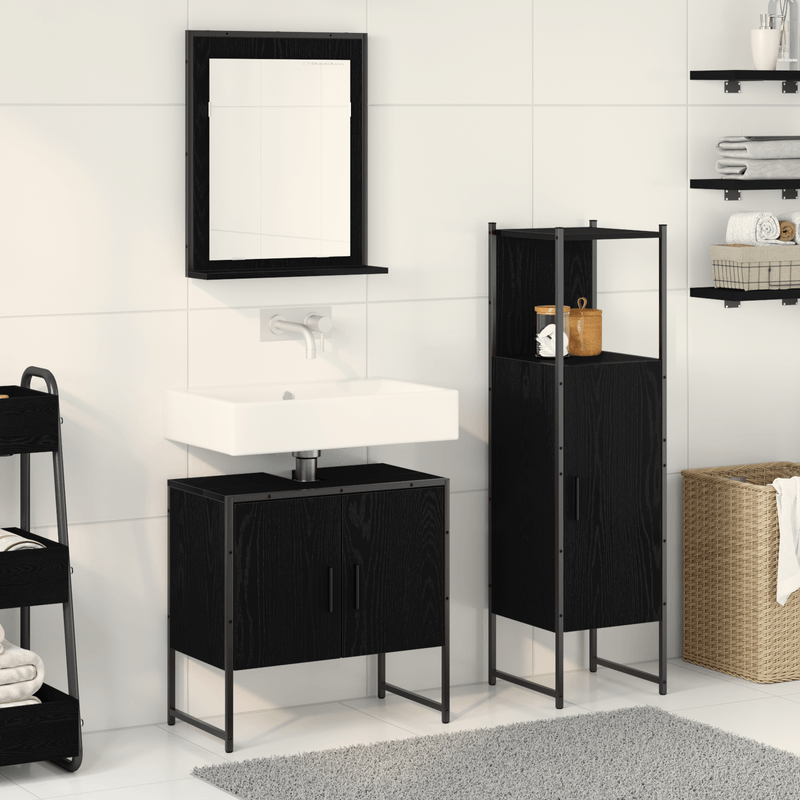 Set de dulapuri pentru baie 3 piese Negru Stejar Lemn prelucrat Set de dulapuri pentru baie 3 piese Negru Stejar Lemn prelucrat
