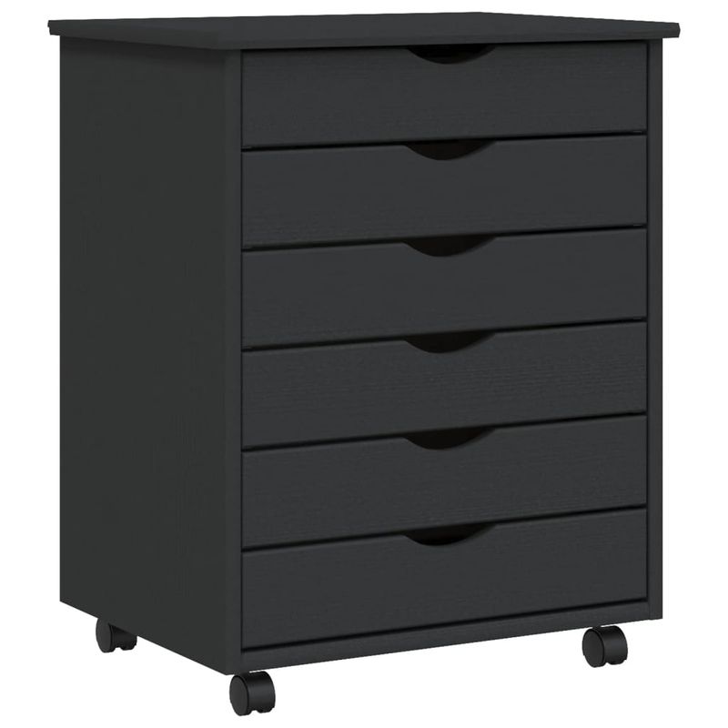 Dulap rulant cu sertare MOSS, gri, lemn masiv de pin Dulap rulant cu sertare MOSS, gri, lemn masiv de pin