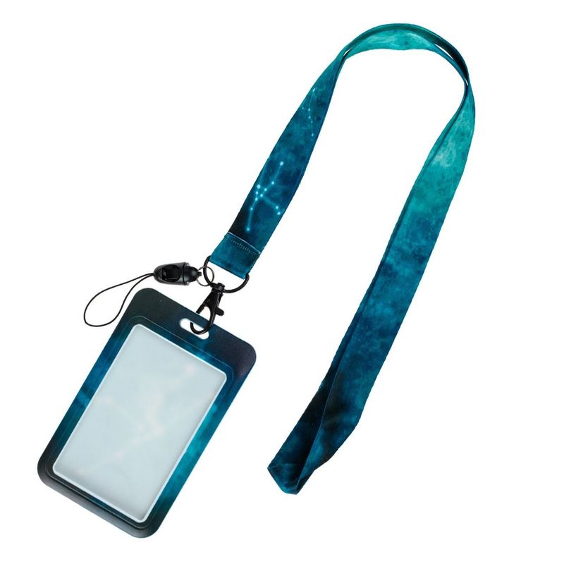 Ecuson legitimatie, tie dye, dimensiune 8.5 x 5cm, culoare albastru, curea 42cm Ecuson legitimatie, tie dye, dimensiune 8.5 x 5cm, culoare albastru, curea 42cm