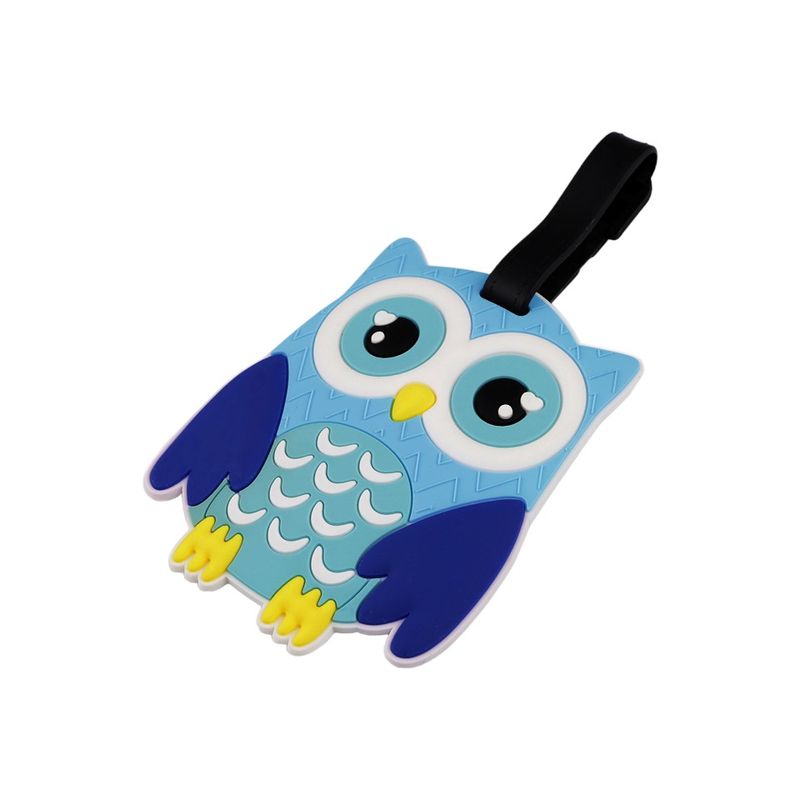 Ecuson silicon pentru identificare bagaje Crisalida, motiv bufnita, 7,8 x 9,5 cm, Albastru
