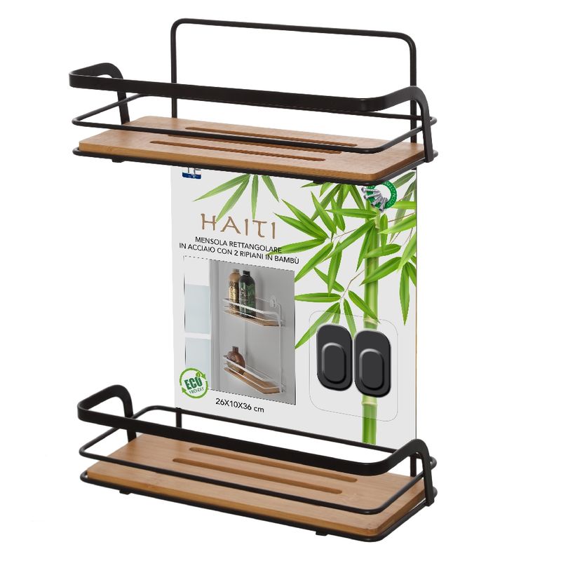 Etajera baie, Feridras Haiti, din metal si bambus, 2 rafturi, negru Etajera baie, Feridras Haiti, din metal si bambus, 2 rafturi, negru