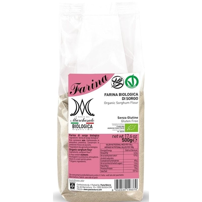 Daca doriti sa incepeti sa pregatiti paine buna de casa fara gluten, alegeti faina de sorg organica de la Marchesato. Aroma sa neutra o face perfecta pentru o varietate de utilizari: nu ar trebui sa lipseasca niciodata din camara daca va place sa pregatiti mancaruri excelente, gustoase si sanatoase, fara gluten. Folositi-o pentru a face aluaturi rustice, dar nu granuloase, asa cum ar fi cu faina integrala macinata grosier. Fara indoiala, este un ingredient de incercat daca nu il cunosti inca. Macinarea fina a fainii de sorg este perfecta pentru amestecuri de prajituri, gogosi, si clatite.