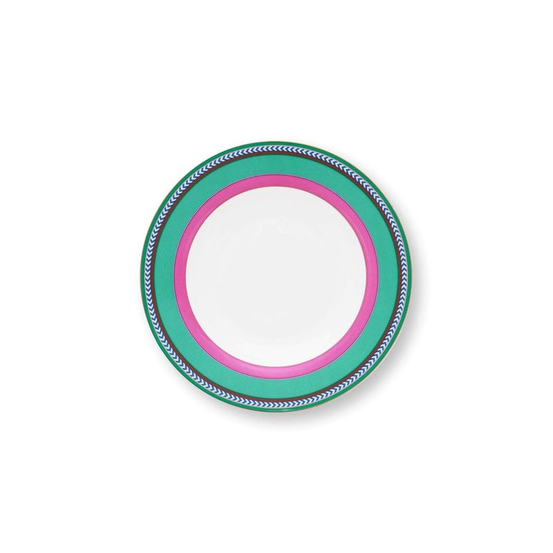 Farfurie adanca din portelan Chique Stripes Pink-Green 23.5cm