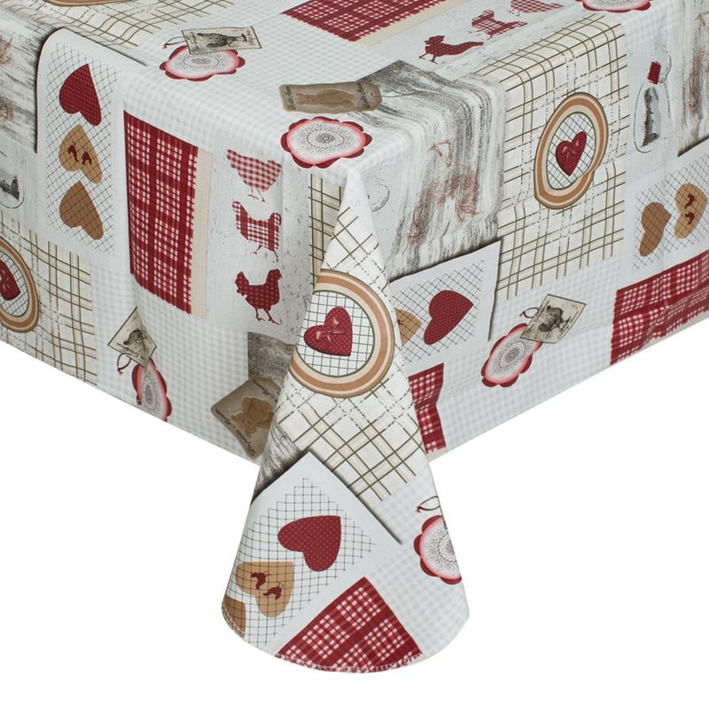 Fata de masa, model inimi si cocosi, bej, 180x 140cm, peva si flanel Fata de masa, model inimi si cocosi, bej, 180x 140cm, peva si flanel