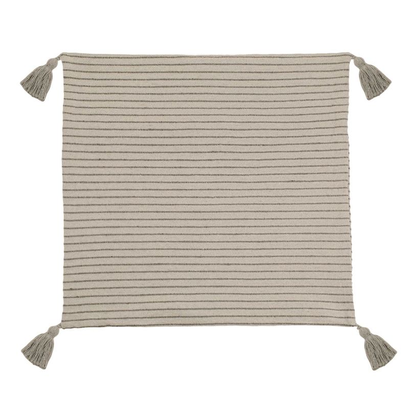 Fata de perna decorativa, model cu dungi subtiri, ciucuri, culoare bej, dimensiuni 45 x 45cm Fata de perna decorativa, model cu dungi subtiri, ciucuri, culoare bej, dimensiuni 45 x 45cm