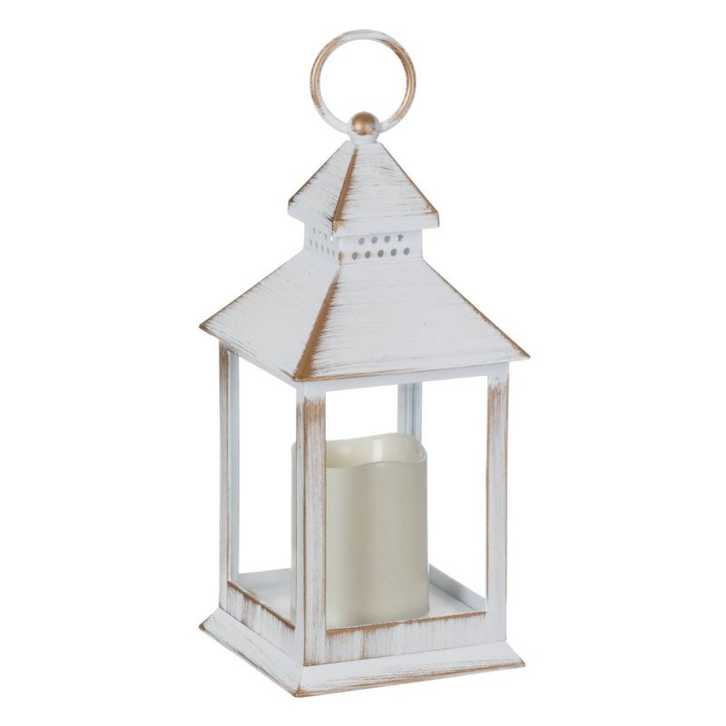 Felinar decorativ, model alb auriu brushed, lumina led calda, 11 x 11 x 24cm Felinar decorativ, model alb auriu brushed, lumina led calda, 11 x 11 x 24cm