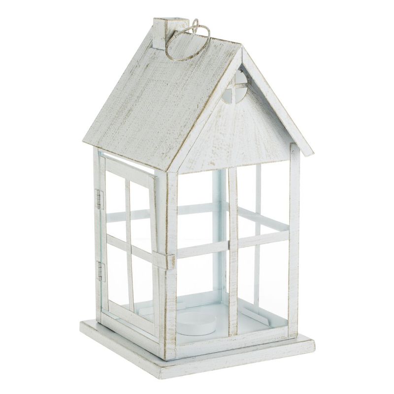 Felinar decorativ, model casa, metalic, culoare alb auriu brushed, dimensiuni 16 x 16 x 30cm Felinar decorativ, model casa, metalic, culoare alb auriu brushed, dimensiuni 16 x 16 x 30cm