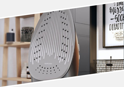 Talpa acoperita cu ceramica este proiectata sa alunece usor, sa asigure o distribuire uniforma a caldurii pe toata placa pentru a elimina cu usurinta cutele. Datorita proprietatilor sale anti-zgarieturi, talpa SoftGlide nu va deteriora accesoriile dure de tipul fermoarelor sau nasturilor metalici. Varful, cu detalii ascutite, ajuta la calcarea perfecta a mansetelor, buzunarelor, colturilor si a altor materiale inguste.