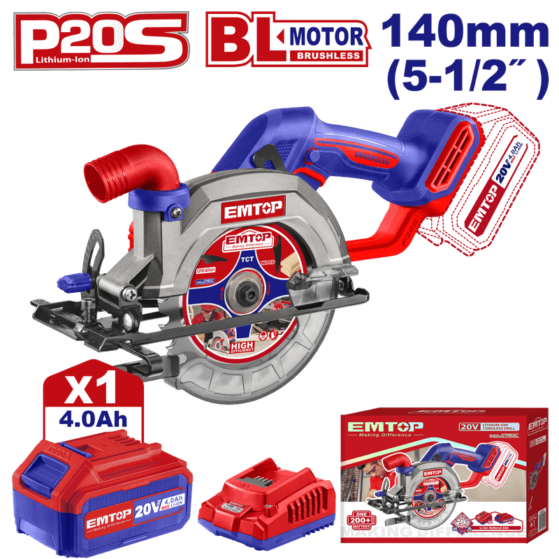 Fierastrau circular cu 1 acumulator 4.0AH, 140mm - ELCS14021, EMTOP Fierastrau circular cu 1 acumulator 4.0AH, 140mm - ELCS14021, EMTOP