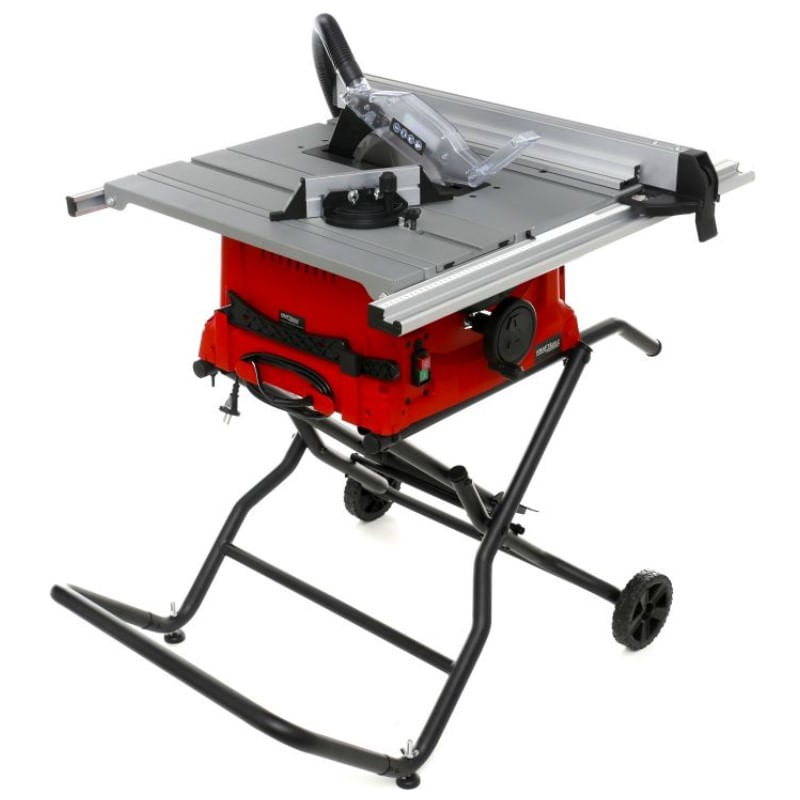 Designul compact si masa pliabila il transforma intr-o unealta usor de transportat si depozitat, in timp ce sistemul integrat de evacuare a rumegusului mentine zona de lucru curata.