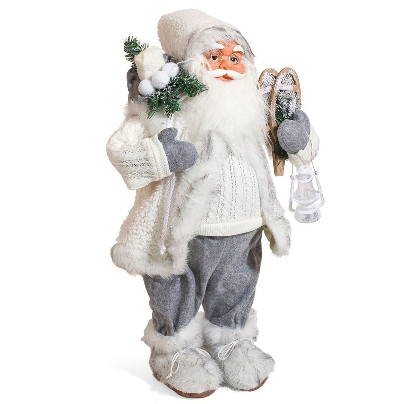 Figurina decorativa mos craciun, model alb, inaltime 60cm, poliester, felinar inclus Figurina decorativa mos craciun, model alb, inaltime 60cm, poliester, felinar inclus