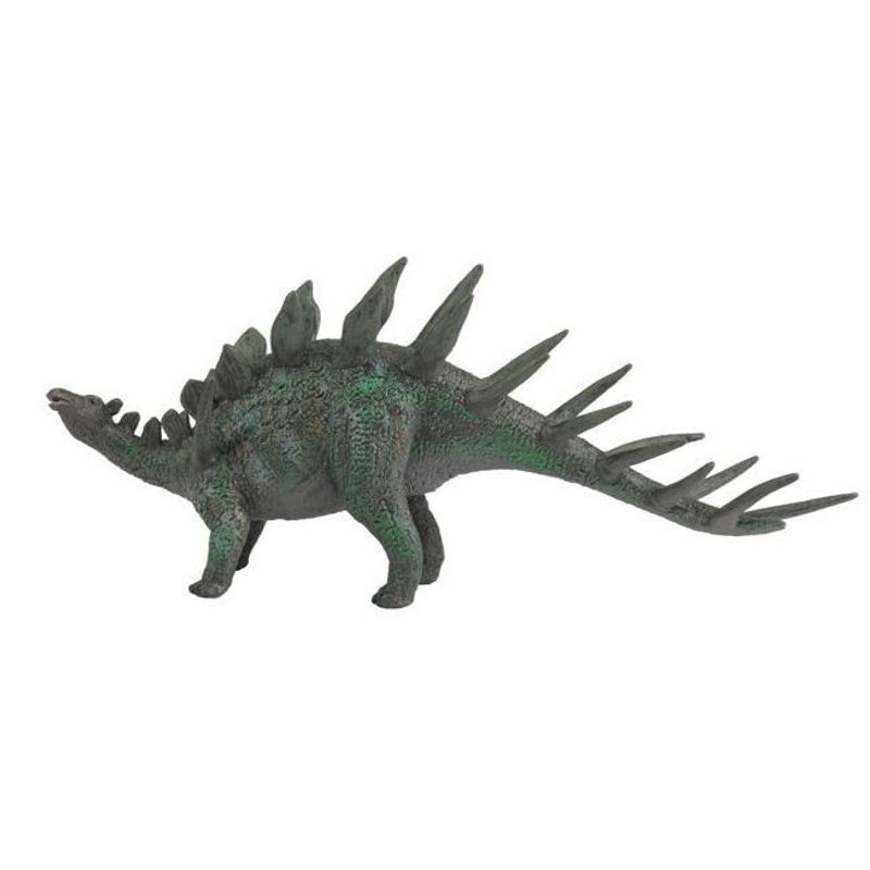 Figurina Kentrosaurus Kentrosaurus este un gen de dinozaur stegosaurian din Jurasic ce a fost descoperit in Tanzania.El a masurat in general in jur de 45 metri (15 picioare) lungime si cantarea aproximativ o tona. El era patruped avand membrele posterioare drepte. Avea un cap mic alungit cu un cioc folosit pentru a manca plante ulterior digerate intr-un intestin mare. El a avut doua siruri de placi pe spate care in zona cozii si a soldului au fuzionat in tepi. Tepii erau folositi in scopuri defensive. Oasele coapsei sunt de doua feluri diferite ceea ce sugereaza ca un sex probabil femelele au fost mai mari si mai robuste decat masculii.