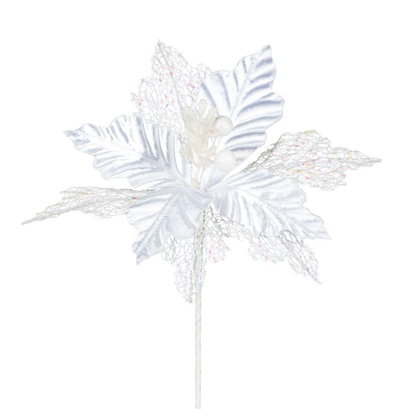 Floare artificiala craciun, catifelata dantelata, glitter, alb, 21 cm Floare artificiala craciun, catifelata dantelata, glitter, alb, 21 cm