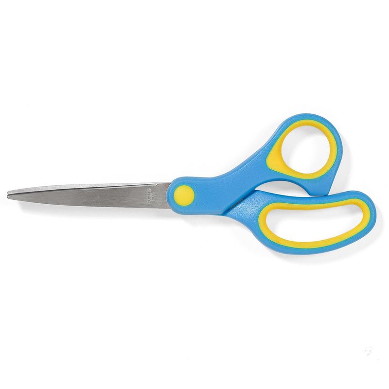 Foarfeca office, inox, varf ascutit, maner moale, albastru-galben, 17.5 cm Foarfeca office, inox, varf ascutit, maner moale, albastru-galben, 17.5 cm