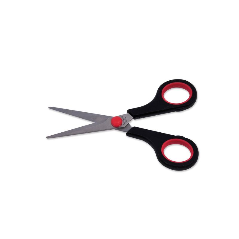 Foarfece birou, model universal, otel inoxidabil, varf ascutit, maner moale, 15cm, negru-rosu Foarfece birou, model universal, otel inoxidabil, varf ascutit, maner moale, 15cm, negru-rosu