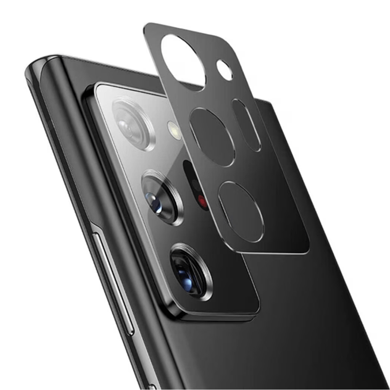 Folia de protectie pentru camera, compatibila cu Samsung Galaxy Note 20 Ultra, este fabricata din sticla securizata cu o duritate de 9H, oferind o protectie robusta impotriva zgarieturilor si impactului. Cu un design elegant in nuante de negru-transparent, asigura nu doar siguranta camerei telefonului, ci si o integrare estetica perfecta cu aspectul dispozitivului.