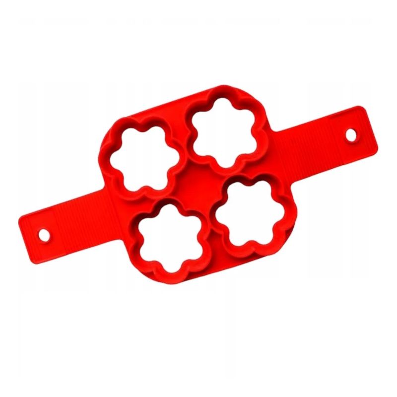 Forma din silicon pentru oua si clatite, model flori, rosu Forma din silicon pentru oua si clatite, model flori, rosu