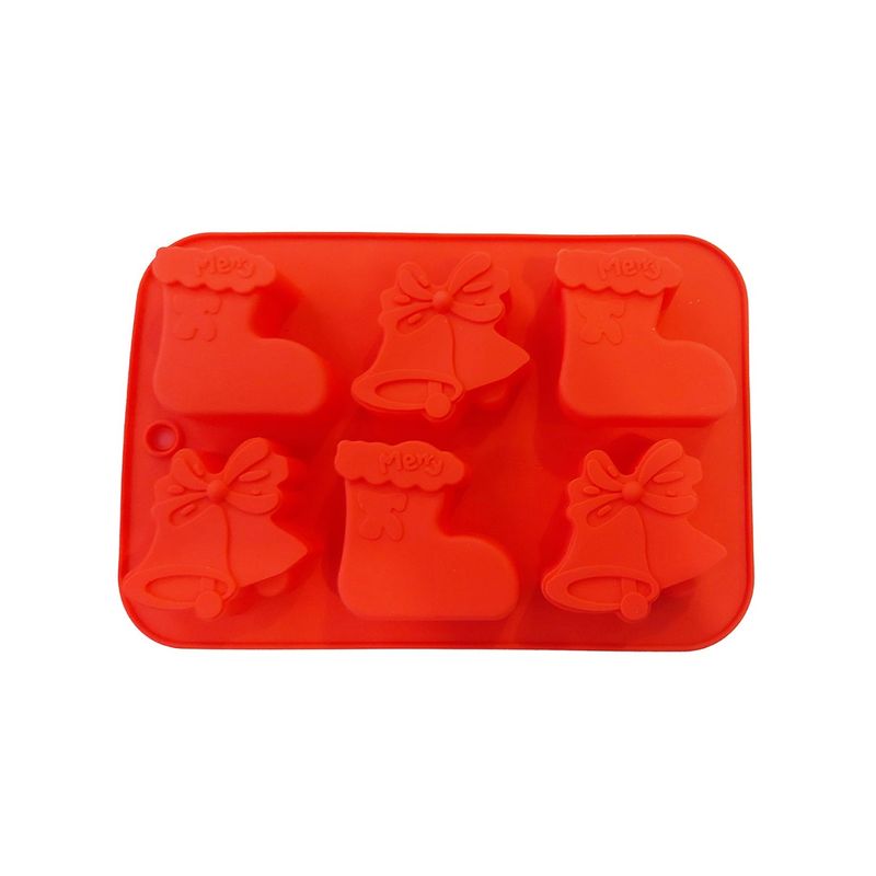 Forma silicon 6 cavitati, Tema Sarbatori de iarna, Pentru prajituri sau Briose, Rosu