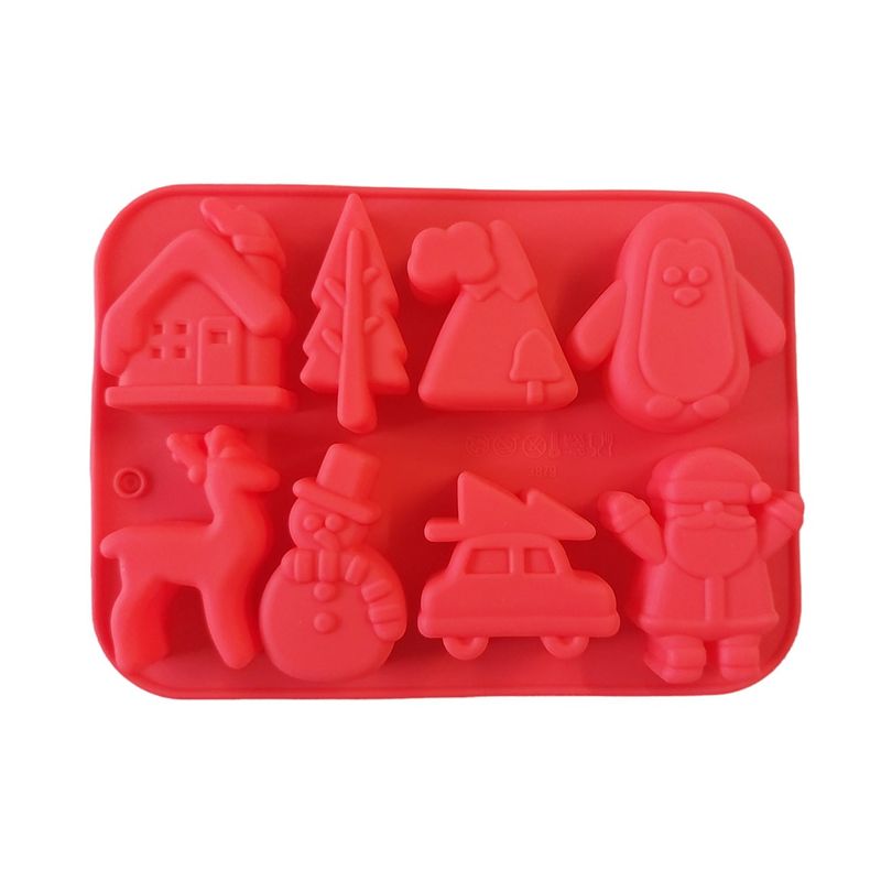 Forma silicon pentru prajituri, Tema Craciun, 8 cavitati, Rosu, 20 cm, 483COF Forma silicon pentru prajituri, Tema Craciun, 8 cavitati, Rosu, 20 cm, 483COF