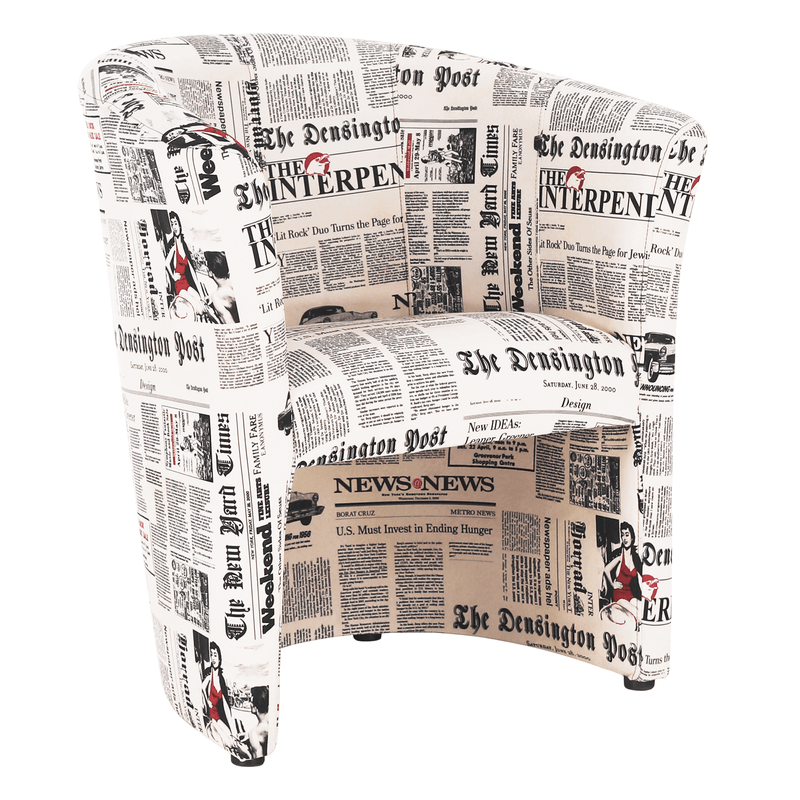 Fotoliu de club, material textil albastru, CUBA Fotoliu de club, material textil motiv ziare, CUBA