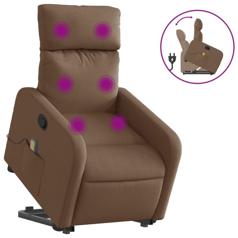 Fotoliu de masaj rabatabil cu ridicare, maro, textil Fotoliu de masaj rabatabil cu ridicare, maro, textil