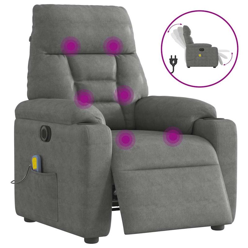 Fotoliu de masaj rabatabil electric, gri inchis, microfibra Fotoliu de masaj rabatabil electric, gri inchis, microfibra