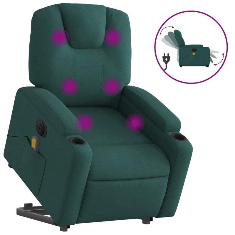 Fotoliu electric masaj rabatabil / ridicare verde inchis textil Fotoliu electric masaj rabatabil / ridicare verde inchis textil