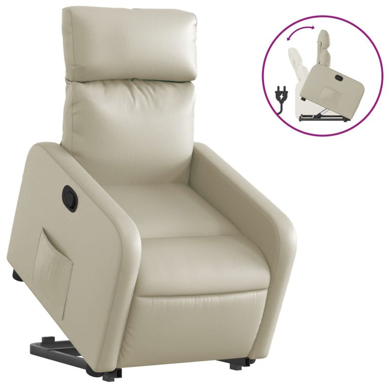 Fotoliu rabatabil cu ridicare, crem, piele ecologica Fotoliu rabatabil cu ridicare, crem, piele ecologica