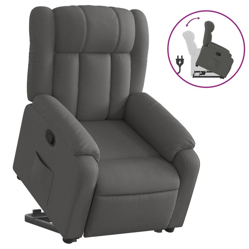 Fotoliu rabatabil cu ridicare pe verticala, gri inchis, textil Fotoliu rabatabil cu ridicare pe verticala, gri inchis, textil