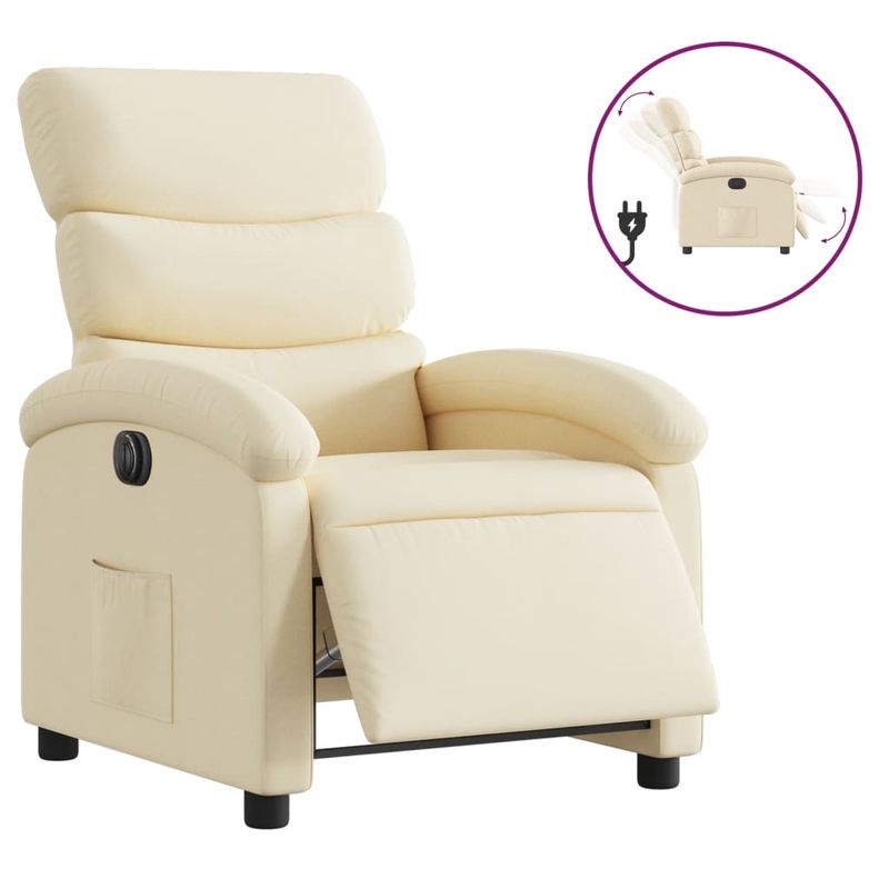 Fotoliu rabatabil electric, crem, material textil Fotoliu rabatabil electric, crem, material textil