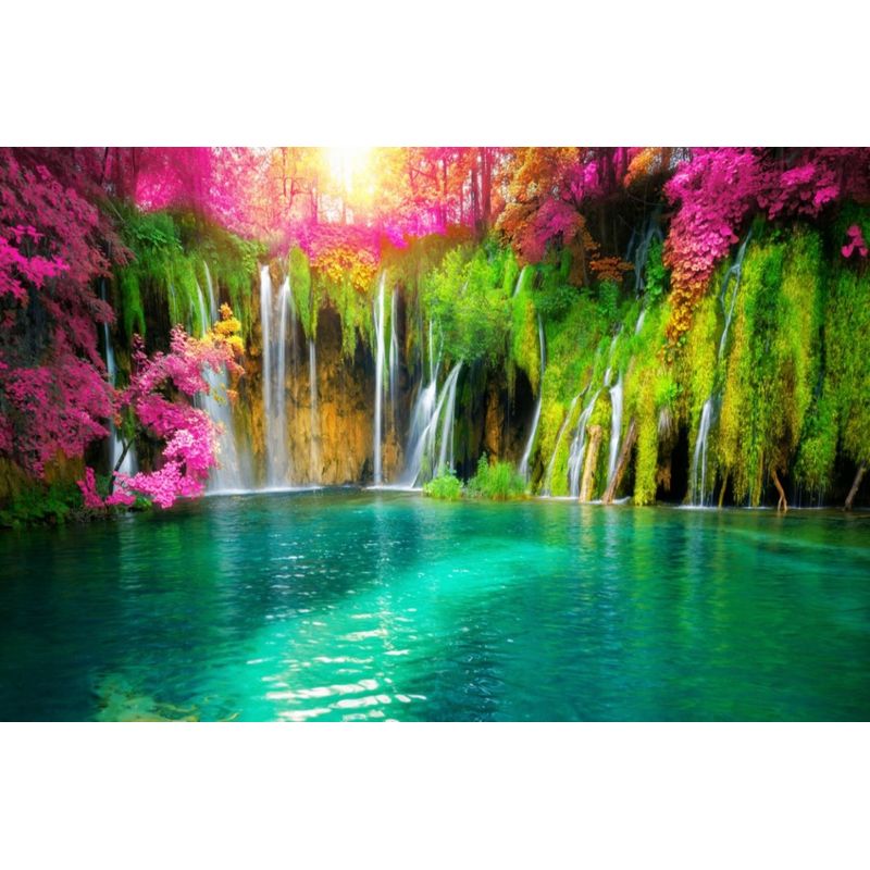 Fototapet de perete, autoadeziv si lavabil, Cascada 53 Cascada din padurea cu frunze roz Fototapet de perete, autoadeziv si lavabil, Cascada 53 Cascada din padurea cu frunze roz, 250 x 200 cm