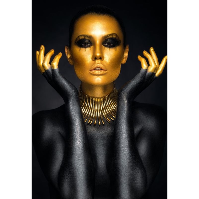 Fototapet de perete, autoadeziv si lavabil, Portert femeie auriu-negru 2 Fototapet de perete, autoadeziv si lavabil, Portert femeie auriu-negru 2, 135 x 225 cm