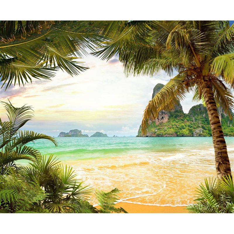 Fototapet, Plaja, palmieri, stanci Fototapet, Plaja, palmieri, stanci, 250 x 150 cm