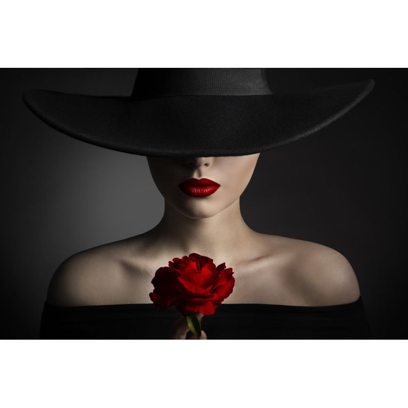 Fototapet, Portrait femeie, fashion, trandafir rosu Fototapet, Portrait femeie, fashion, trandafir rosu, 200 x 150 cm
