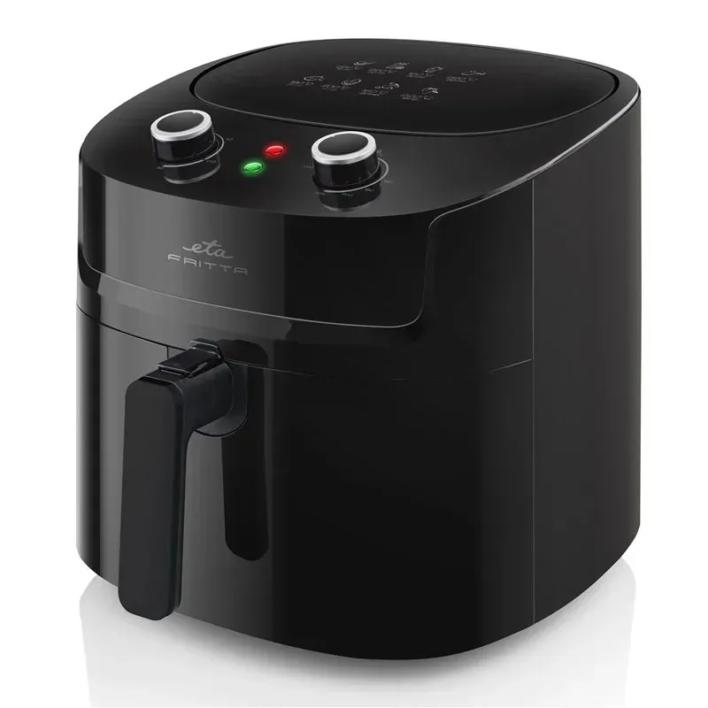 Consum de energie 1800 W Reglare continua a temperaturii in intervalul 160-220 °C Cronometru reglabil 0-30 minute sau functionare continua 8 programe prestabilite Recipient antiaderent detasabil cu volum de 7,2 litri Cos pentru prajit Avertizare sonora si luminoasa Maner izolat termic pentru operare in siguranta Picioare antiderapante pentru stabilitate Design din plastic de calitate care reduce riscul de arsuri Protectie la supraincalzire Blocare de siguranta impotriva asamblarii incorecte Lungimea cablului de alimentare 0,6 m Pregateste-ti mancarurile preferate intr-un mod mai sanatos si cu un minimum de grasime adaugata ! Friteuza ETA Fritta prajeste alimente folosind aerul cald. Rezultatele sunt fripturi prajite uniform, cartofi prajiti, crochete, falafel de legume, legume uscate, etc. Cu ETA Fritta 2168 90000 nu trebuie sa te limitezi doar la prajire. Aparatul prepara deasemenea cu usurinta briose si usuca ciuperci si alte legume. Economie de energie de pana la 50% Pregatirea alimentelor cu ETA Fritta nu este doar sanatoasa, ci si mai ieftina. Datorita recipientului XXXL friteuza poate fi folosita ca un cuptor mai mic cu aer cald dar cu pana la 50% mai putin consum de curent fata de un cuptor conventional. Cu posibilitatea de reglare continua a temperaturii in intervalul 160-220 °C aveti control absolut asupra intregului proces de preparare. Datorita cronometrului reglabil pana la 30 de minute , friteuza va anunta intotdeauna ca mancarea este gata. Daca doriti sa serviti preparatele mai tarziu, utilizati functionarea continua cu ajutorul careia aparatul va mentine temperatura setata pana cand o veti opri. Recipient mare antiaderent, suficient pentru intreaga familie Nu trebuie sa va mai faceti griji ca nu aveti suficient spatiu interior. Volumul mare al recipientului de 7,2 litri va fi suficient si pentru o familie numeroasa. In recipient se poate gati chiar si un pui intreg. Deasemenea cosul practic pentru prajit este foarte util. Recipientul este prevazut in partea inferioara cu un gratar. Friteuza foloseste eficient spatiul interior astfel incat in ciuda volumului urias al recipientului, nu ocupa mult spatiu pe blatul din bucatarie. Siguranta pe primul loc Dorim ca procesul de gatire sa fie sigur si usor. De aceea friteuza noastra este echipata cu avertizari luminoase si sonore care va informeaza despre starea dispozitivului si despre procesul de gatire. Manerul izolat termic este conceput sa va ofere o utilizare in siguranta si pentru a minimiza riscul de arsuri. Picioarele anti-alunecare asigura stabilitatea dispozitivului atunci cand il utilizati sau il manevrati. Deasemenea este dotata cu protectie la supraincalzire si cu o siguranta impotriva asamblarii incorecte. ETA Fritta este echipata cu un cablu de alimentare de 0,6 metri oferind multa flexibilitate atunci cand folositi aparatul in bucatarie. Cu o putere de 1800 W obtineti suficienta putere pentru a gati rapid si eficient.