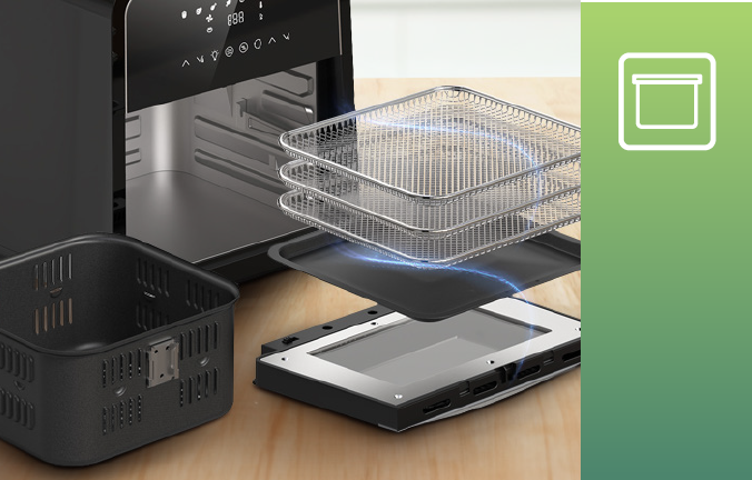 Friteuza cu aer cald are si de functia cuptor, asa
