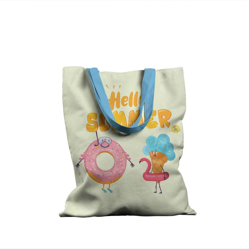 Fashion, accesorii si bijuteriiFemeiAccesorii femeiGenti si rucsacuri femeiGeanta Handmade, Tote Bag Basic Mulewear, Hello Summer Inghetata si Gogoasa la Plaja, Multicolor, 43x37 cm