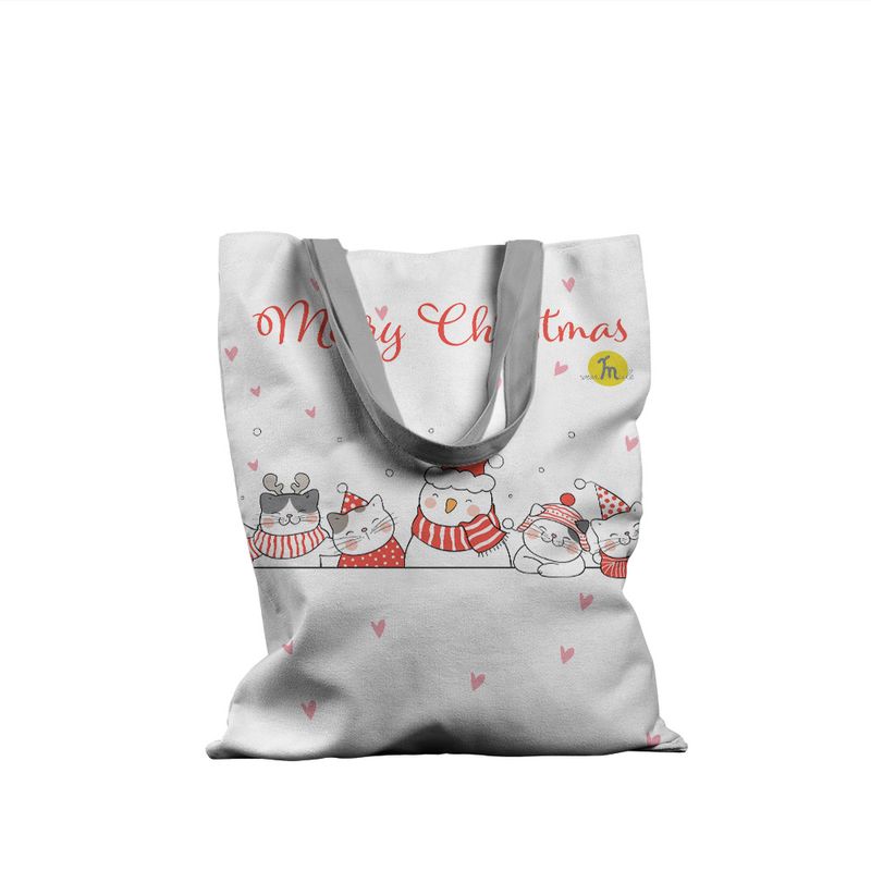 Geanta Handmade Tote Basic, Merry Christmas Urare de Craciun Geanta Handmade Tote Basic, Merry Christmas Urare de Craciun de la 5 Pisici, Multicolor, 43 x 37 cm