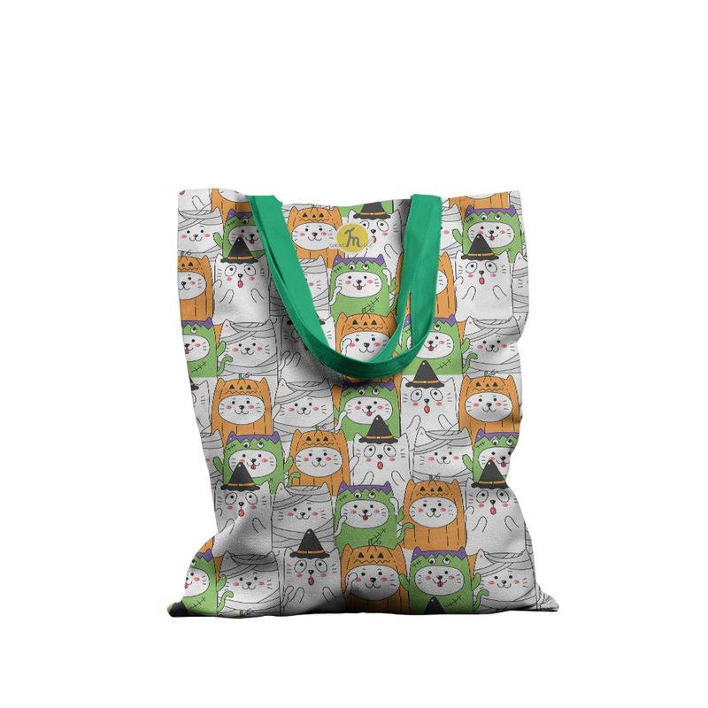 Geanta Handmade Tote Basic, Mulewear, Halloween Geanta Handmade Tote Basic, Mulewear, Halloween Pisici Deghizate in Pisici la Colindat, Multicolor, 43 x 37 cm