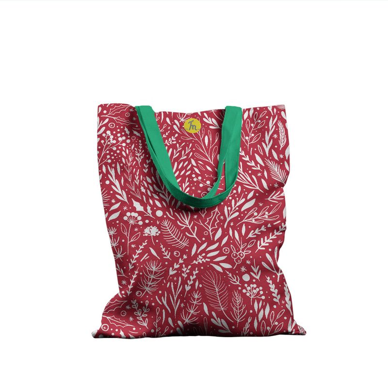 Geanta Handmade Tote Basic, Pattern de Craciun cu Plante, Multicolor, 43x37 cm Geanta Handmade Tote Basic, Pattern de Craciun cu Plante, Multicolor, 43x37 cm