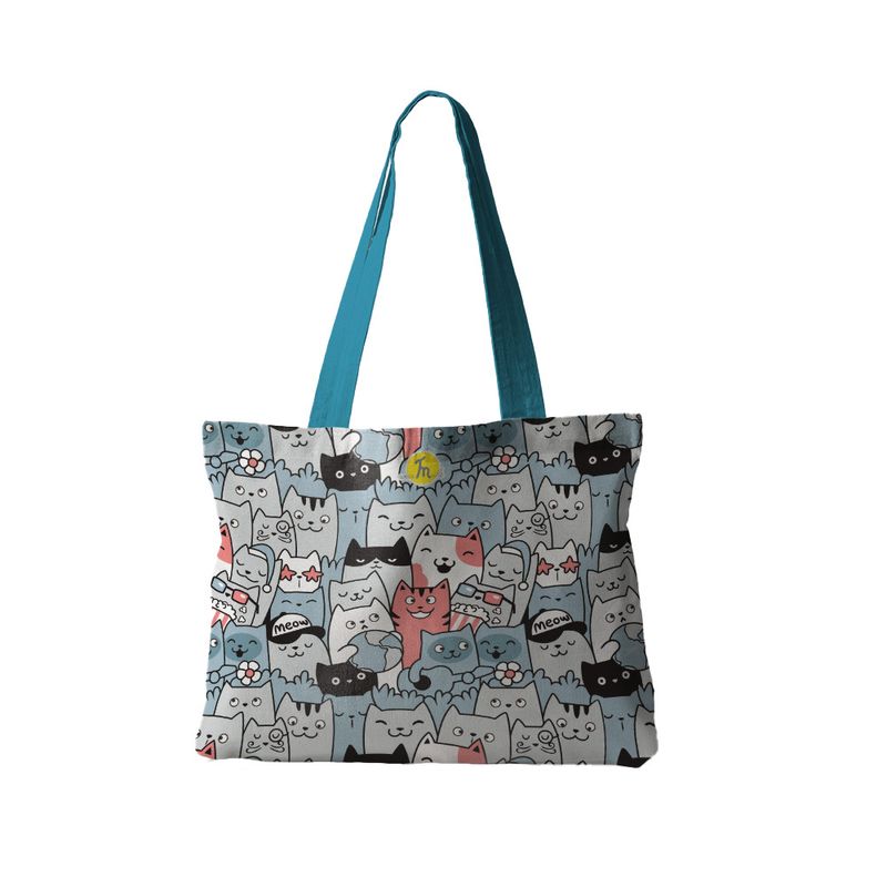 Geanta Handmade Tote Fatty cu Captuseala, O Multime Pisici Fericite, Multicolor, 37x45 cm Geanta Handmade Tote Fatty cu Captuseala, O Multime Pisici Fericite, Multicolor, 37x45 cm
