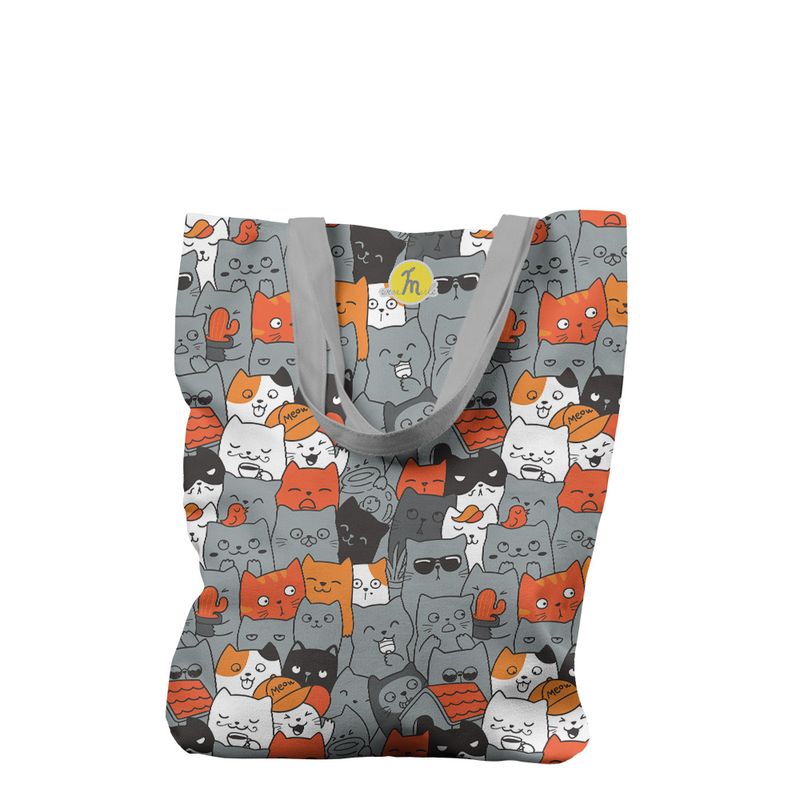 Geanta Handmade Tote Liner cu Captuseala, Duminica cu Pisici, Multicolor, 45x37 cm Geanta Handmade Tote Liner cu Captuseala, Duminica cu Pisici, Multicolor, 45x37 cm