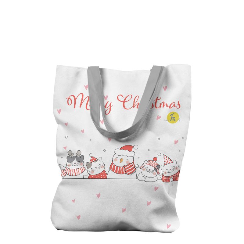 Geanta Handmade Tote Liner cu Captuseala, Merry Christmas Geanta Handmade Tote Liner cu Captuseala, Merry Christmas Urare Craciun de la 5 Pisici, Multicolor, 43 x 37 cm
