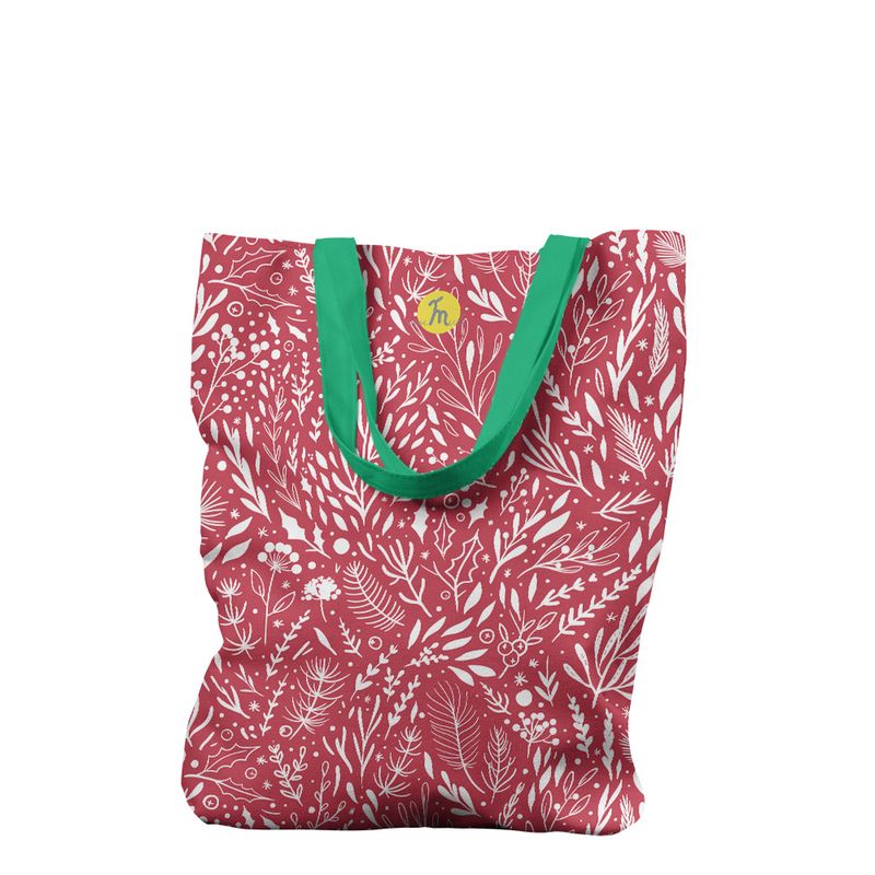 Geanta Handmade Tote Liner cu Captuseala, Pattern de Craciun cu Plante, Multicolor, 45x37 cm Geanta Handmade Tote Liner cu Captuseala, Pattern de Craciun cu Plante, Multicolor, 45x37 cm